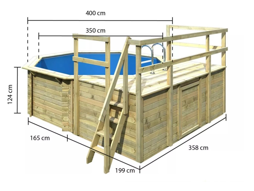 Konstrukce bazénu je vyrobená z tlakově impregnovaného dřeva o síle 38 mm. Impregnace dřeva je velmi účinnou a ekologicky šetrnou metodu pro ochranu dřeva. Do vnitřní struktury dřeva se vytlačuji vysokým tlakem v průmyslové přetlakové komoře zředěné impregnační soli. Takhle ošetřené dřevo má specifické vlastnosti, jako je typická nazelenalá nebo našedlá barva.