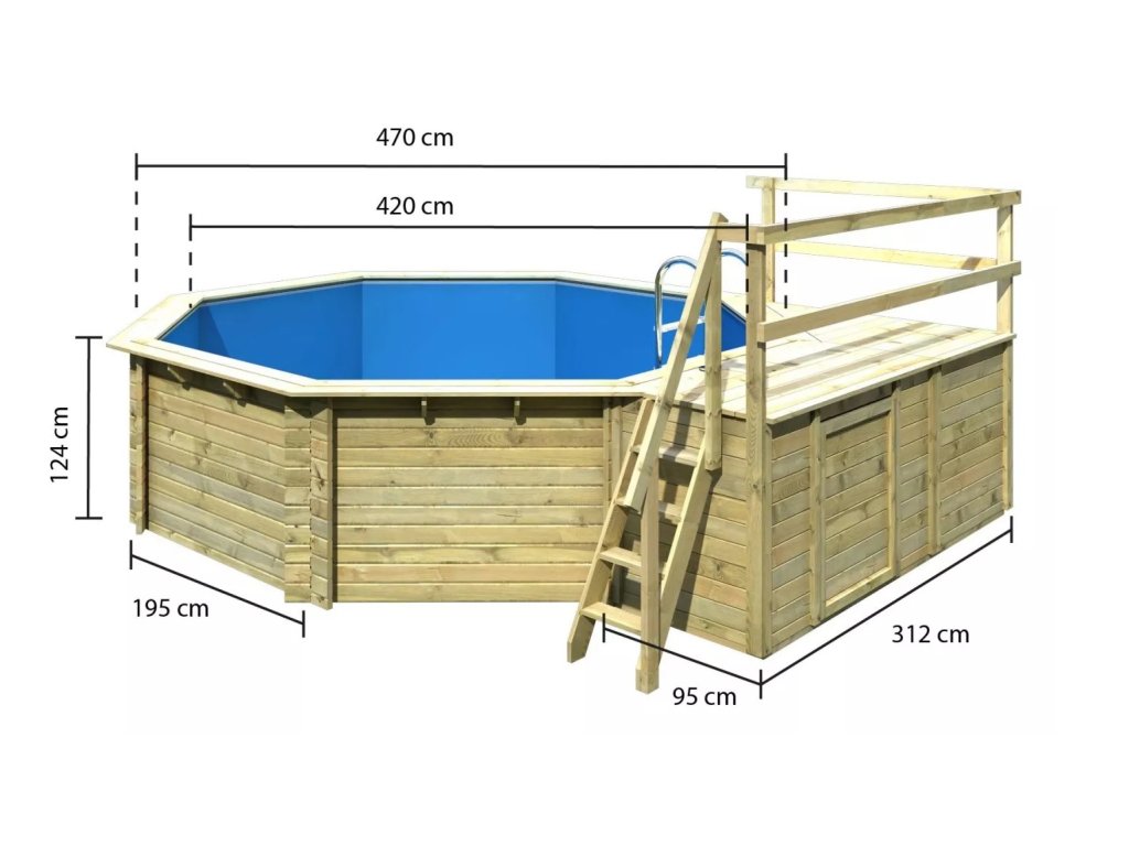 Konstrukce bazénu je vyrobená z tlakově impregnovaného dřeva o síle 38 mm. Impregnace dřeva je velmi účinnou a ekologicky šetrnou metodu pro ochranu dřeva. Do vnitřní struktury dřeva se vytlačuji vysokým tlakem v průmyslové přetlakové komoře zředěné impregnační soli. Takhle ošetřené dřevo má specifické vlastnosti, jako je typická nazelenalá nebo našedlá barva.
