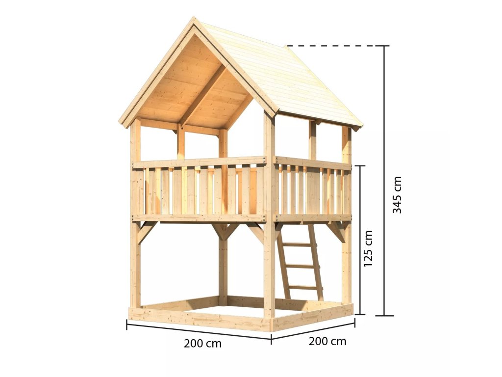 Dětské hřiště KARIBU LUIS poskytuje dětem spoustu možností ke hrám. Nabízí vše k tomu, aby děti mohly prožít veškeré své hrací fantazie. Stejně jako u všech našich dětských hřišť i u modelu KARIBU LUIS používáme výhradně to nejlepší smrkové dřevo. Hřiště má nosné sloupy o tloušťce 90 x 90 mm a je vyrobené z dřevěných profilů o síle 18 mm (spoje v systému pero / drážka). Naše dřevo pochází ze vzdáleného severu Evropy a je chemicky naprosto neošetřené. V důsledku toho je prosté všech známých problematických látek. Díky výšce plošiny 125 cm nabízí hřiště KARIBU LUIS dětem dokonalý výhled na zahradu. Hřiště je standardně vybaveno robustním dřevěným žebříkem se 4 příčkami a pískovištěm pod věží. Dětské hřiště KARIBU LUIS má samozřejmě certifikát TÜV Nord ověřující bezpečnost výrobku (GS) podle DIN EN 71-1, DIN EN 71-3, DIN EN 71-8 a AfPS GS 2014.