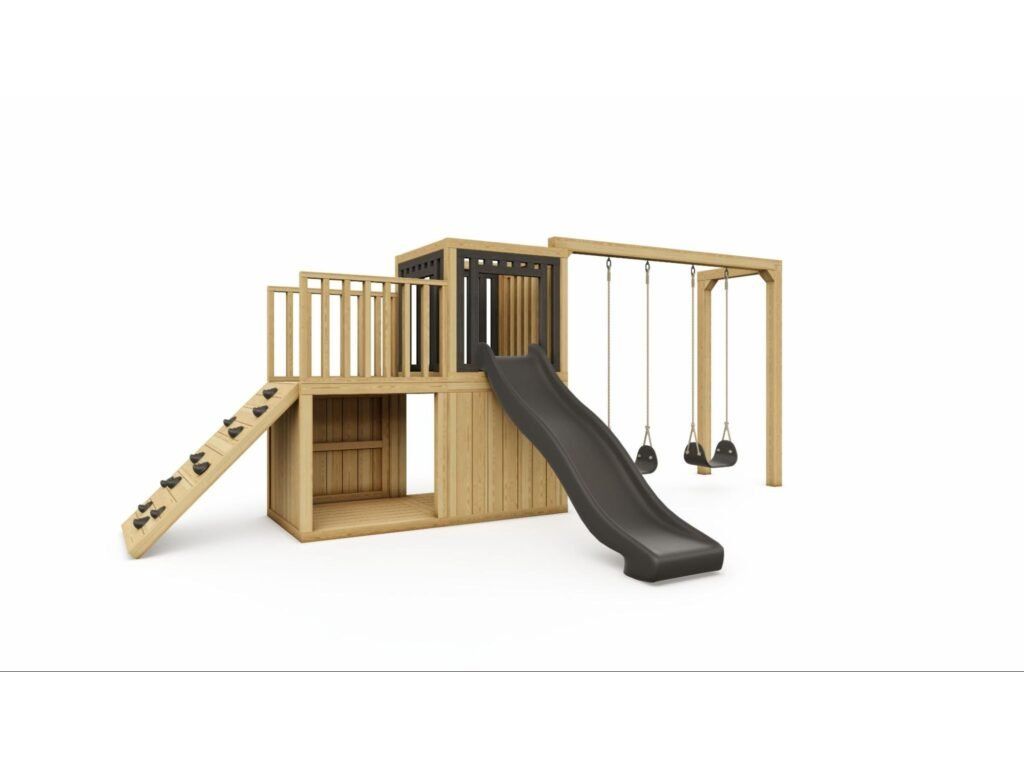 Malé množství prvků nabízí velké možnosti pro zábavné trávení času. Děti zde najdou houpačku, lezeckou stěnu a místo pro montáž skluzavky a v dolní části si díky své kreativitě mohou vytvořit zajímavý úkryt.