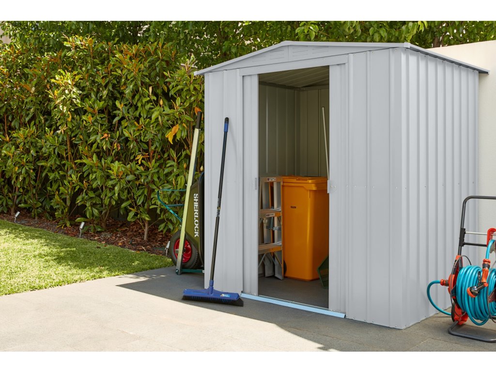 Ocelový zahradní domek nejvyšší kvality s robustní konstrukcí a precizním zpracováním s klasickou sedlovou střechou, střešním oknem a čelními posuvnými dveřmi. Zahradní domek GLOBEL je vyrobený v Austrálii renomovanou společností GLOBEL INDUSTRIES. Vyznačuje se vysokou úrovní dílenského zpracování. Jako jediné zahradní domky v české a slovenské republice jsou vyrobené kompletně z pozinkovaného plechu. Ocelové domky GLOBEL se vyrábějí ve speciální povrchové antikorozní úpravě. Materiál zahradního domku je galvanicky pozinkován. Základna je potažena profesionálním metalickým povlakem BlueScope s technologií Activate®. Táto technologie poskytuje zvýšenou odolnost i proti korozi. Pro vysokou přilnavost dalších nátěrů se nanáší další přípravná vrstva. Na povrchu se potom vypaluje základní nátěr, ten chrání povrch nejen mechanicky, ale i chemicky. V posledním výrobním kroku se na základovou vrstvu napaluje vrchní nátěr speciálně vyvinuté barvy odolné vůči povětrnostním vlivům.