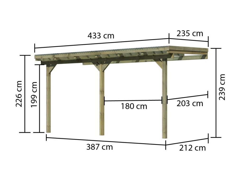 Dřevěná pergola ke zdi je vyrobená v Německu renomovanou firmou KARIBU HOLZTECHNIK z tlakově impregnovaného borovicového dřeva. Dřevěná pergola Vás ochrání před nepříznivým počasím. Díky tomu si na své zahradě vytvoříte oázu klidu a užijete si naplno venkovní posezení s rodinou a přáteli. Je ideální pro zastřešení terasy či verandy, nebo jako přístřešek pro automobil – carport. Konstrukce je z tlakově impregnovaného borovicového dřeva s nosnými sloupy o průměru 9 x 9 cm. Konstrukce se hlavně vyznačuje zvýšenou odolností vůči povětrnostním vlivům. Pergola je zastřešená z lehce namodralých průhledných PVC trapézových desek.