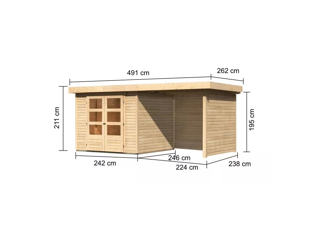 Dřevěný domek KARIBU ASKOLA 3,5 + přístavek 2,4 m včetně zadní a boční stěny