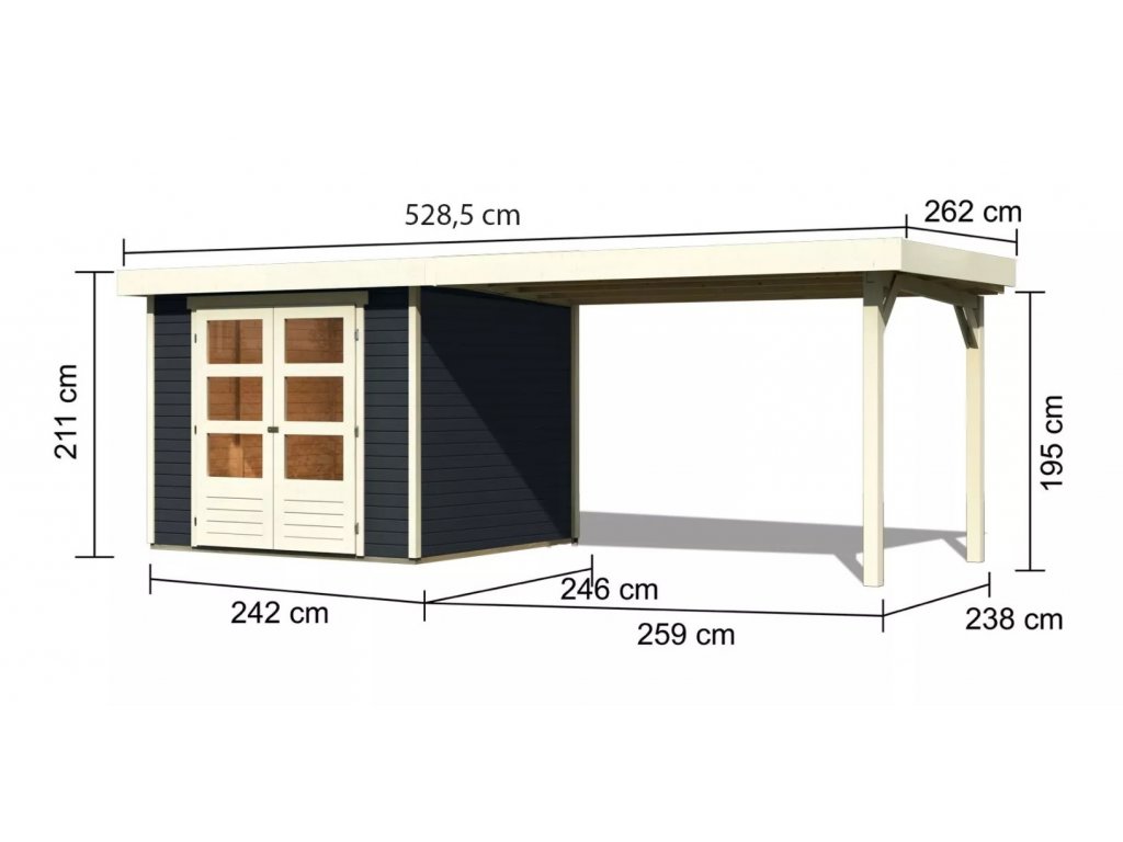 Dřevěný domek KARIBU ASKOLA 3,5 + přístavek 2,8 m Antracit