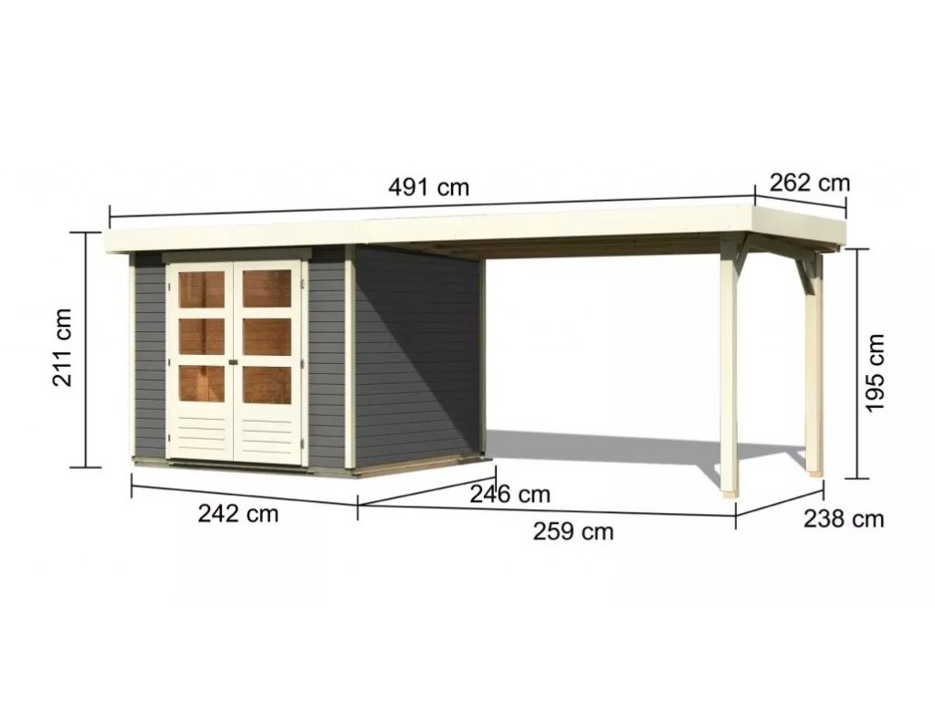 Dřevěný domek KARIBU ASKOLA 3,5 + přístavek 2,8 m Šedý
