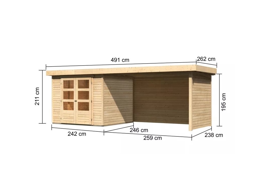 Dřevěný domek KARIBU ASKOLA 3,5 + přístavek 2,8 m včetně zadní a boční stěny