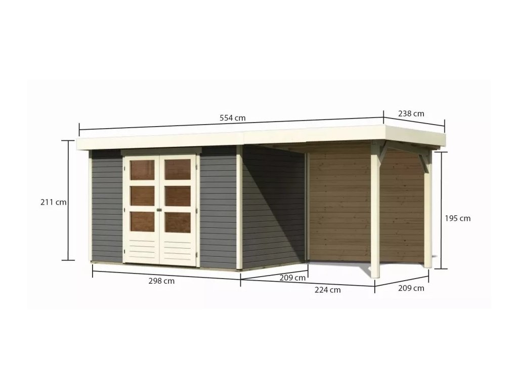 Dřevěný domek KARIBU ASKOLA 4 + přístavek 2,4 m včetně zadní stěny Šedý