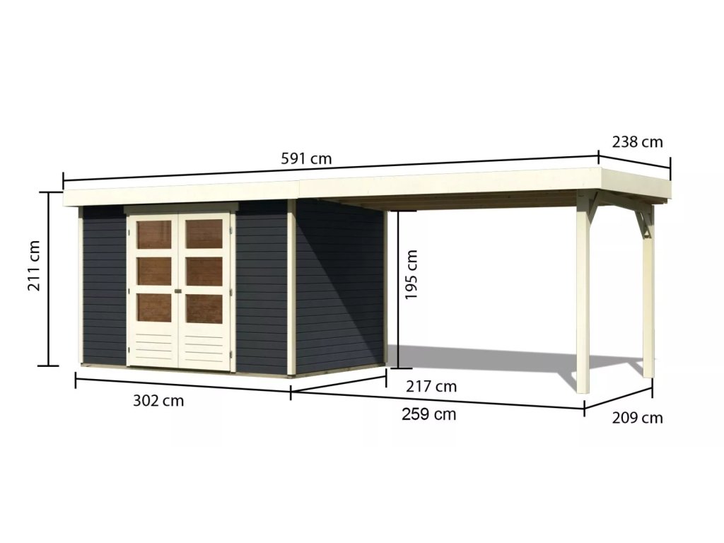 Schéma: Dřevěný domek KARIBU ASKOLA 4 + přístavek 2,8 m Antracit