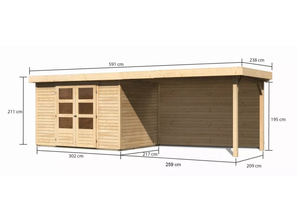 Dřevěný domek KARIBU ASKOLA 4 + přístavek 2,8 m včetně zadní stěny