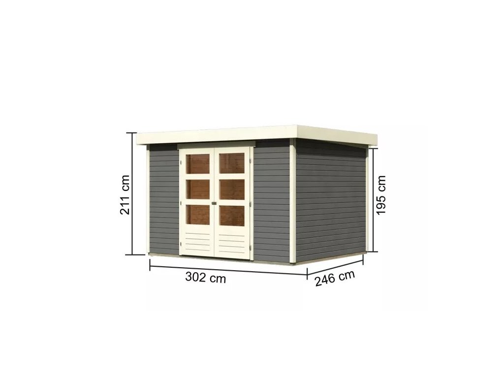 Tento model domku dodáváme v profesionálním nátěru KARIBU (odstín terragrau RAL 0604005):