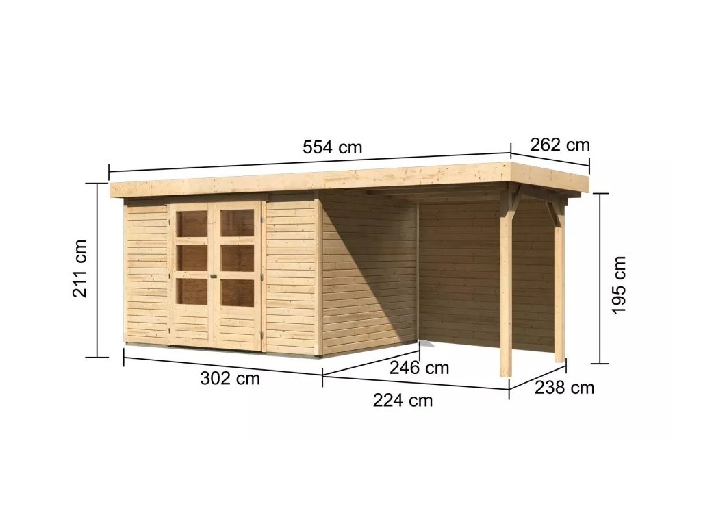 Dřevěný domek KARIBU ASKOLA 5 + přístavek 2,40 m včetně zadní stěny