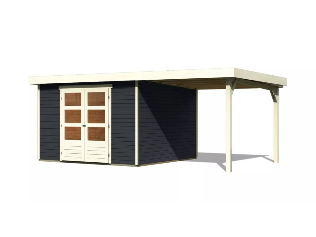 Dřevěný domek KARIBU ASKOLA 6 + přístavek 240 cm (38676) antracit