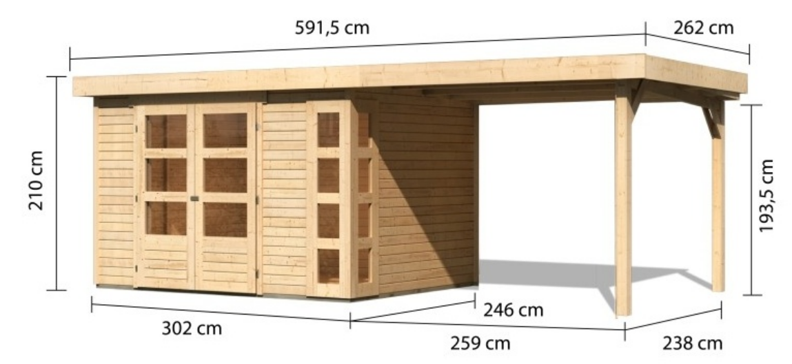 Schéma: Dřevěný domek KARIBU KERKO 5 + přístavek 2,8 m