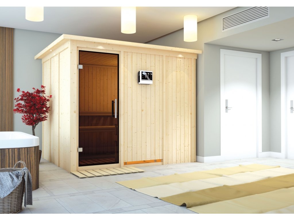 Foto: Finská sauna KARIBU GOBIN včetně dodatečného příplatkového LED osvětlení