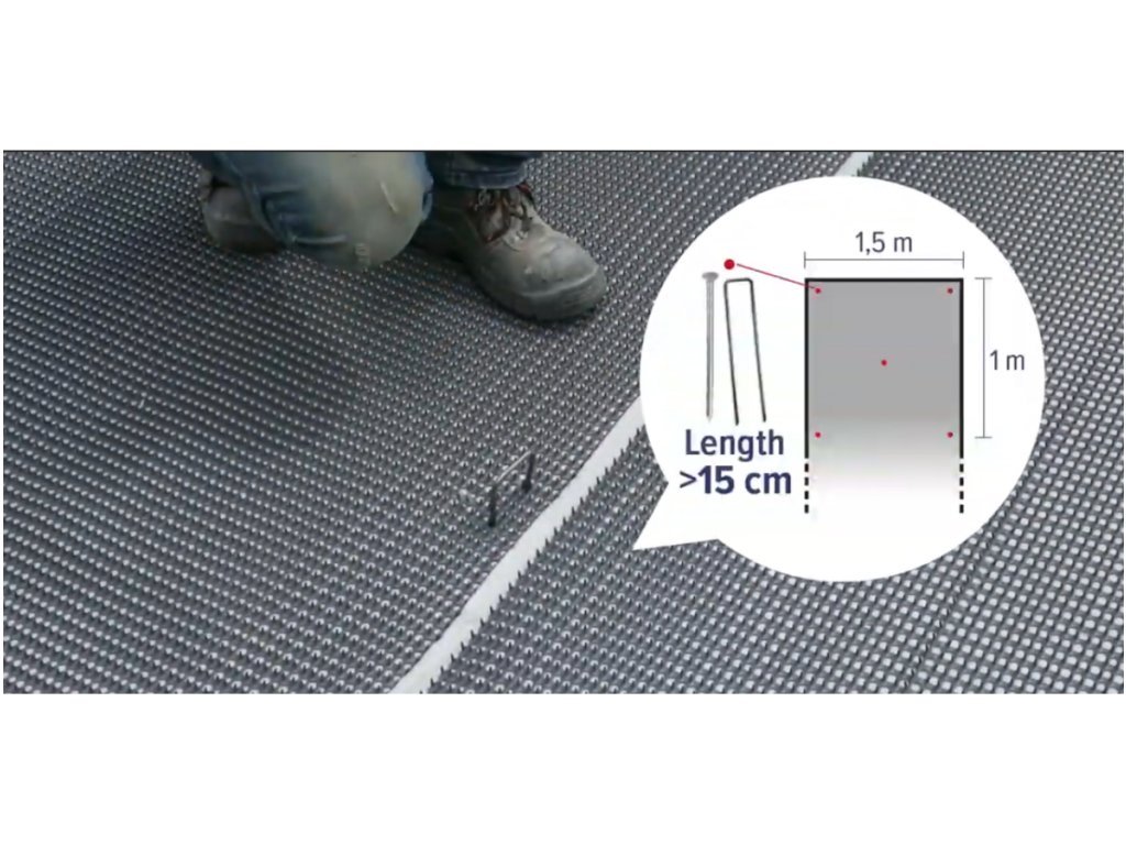 Univerzální pozinkovaný kotvící úchyt typu J pro zatravňovací rohože nebo umělé trávníky. Rozměr úchytu je 250 mm. Průměrná spotřeba pro rohože GP flex, TR, Gravel Lock je cca 4 - 5 ks/m2