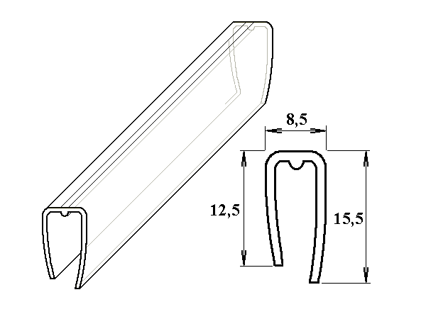 - Profil typu U určený k ukončení nebo lemování komůrkových polykarbonátových desek