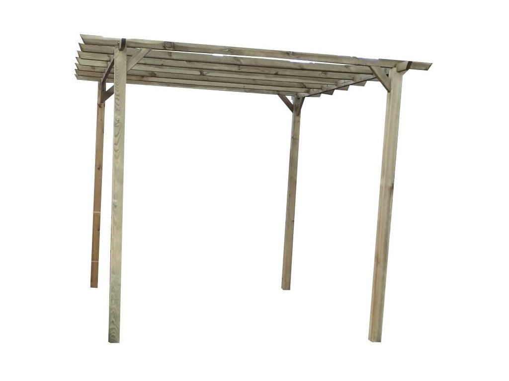 Samostatně stojící zahradní dřevěná pergola z přírodního dřeva ošetřeného talkovou impregnaci. Dřevěná pergola Vás ochrání před nepříznivým počasím. Díky tomu si na své zahradě vytvoříte oázu klidu a užijete si naplno venkovní posezení s rodinou a přáteli. Je ideální pro zastřešení terasy či verandy. Konstrukce je z tlakově impregnovaného borovicového dřeva s nosnými sloupy o průměru 90 x 90 mm, ostatní profily jsou silné 30 mm. Konstrukce se hlavně vyznačuje zvýšenou odolností vůči povětrnostním vlivům. Pergola má na střeše střešní fošny pro zastínění.