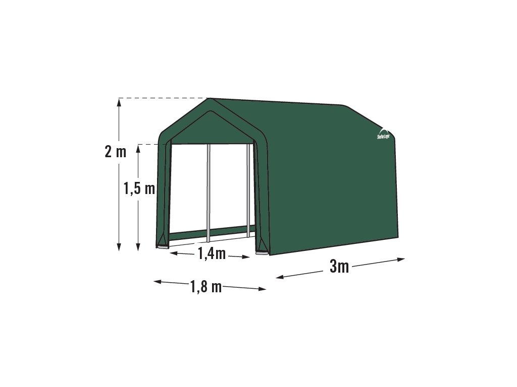 Plachtový přístřešek amerického výrobce ShelterLogic s rozměry  š 1,80 x d 3,00 x v 2,00 m a zastavěnou plochou 5,4 m2. Konstrukce z ocelových trubek o průměru 35 mm opatřených prémiovou antikorozní úpravou. Zelená plachta z třívrstvého tkaného zeleného polyethylenu s UV filtrem. Vyrobeno v USA.