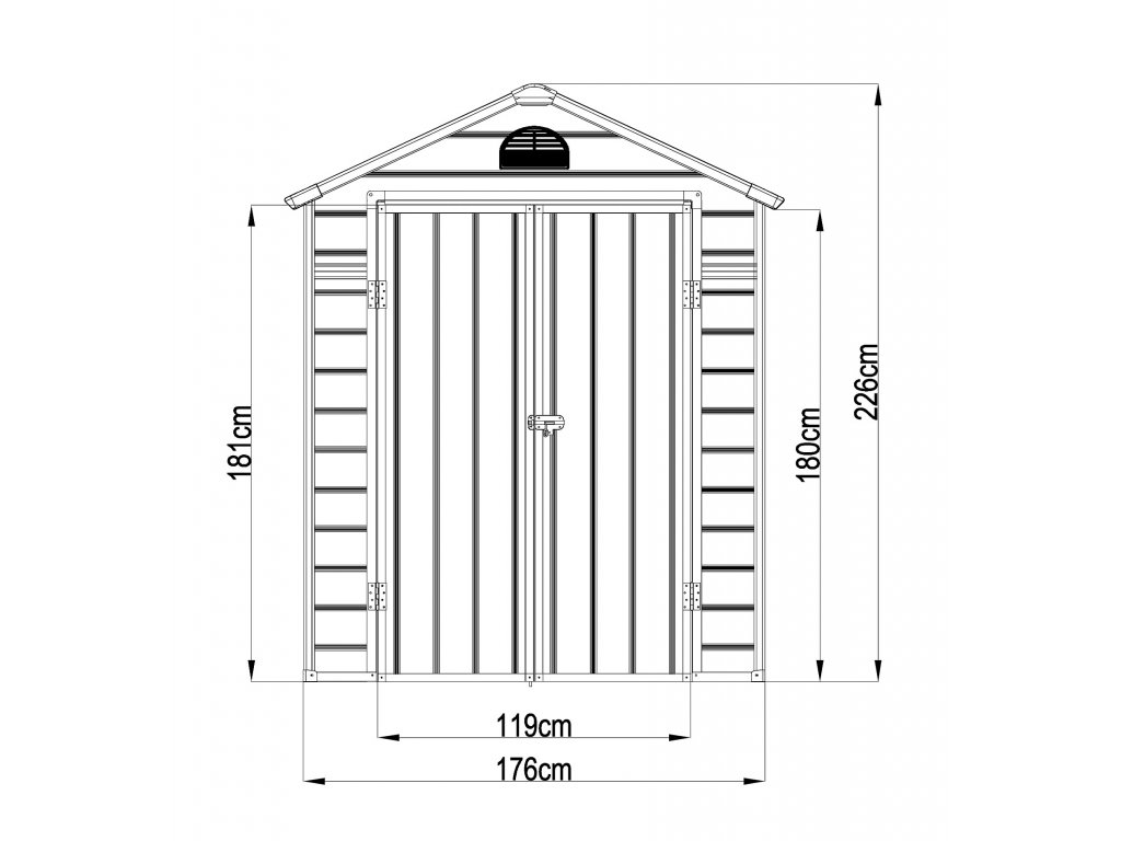 Bezúdržbový, designový a praktický plastový domek z extrémně odolného polypropylenu s UV filtrem o síle stěny 12 mm se sedlovou střechou. Domek nežloutne ani nekřehne na slunci. Nemusíte ho pravidelné natírat, jak je to nutné u tradičních dřevěných domků. Tento lehký a počasí odolný plast s vysokou tepelnou stabilitou, z kterého je domek vyrobený, se běžně využívá na výrobu popelnic nebo vodovodního a kanalizačního systému. Odolný domek LONGFORD 66 od renomovaného výrobce Lanit Plast může sloužit pro uschování nářadí, zahradní techniky, zahradního nábytku, jízdního kola, příslušenství k bazénu nebo dřeva. Dvojité křídlové dveře o rozměrech 1,19 x v 1,81 m umožňuji snadný přístup do domku. Sedlová střecha zajišťuje efektivní odvod dešťové vody. Uvnitř domku je omezená kondenzace vody ve srovnání s kovovými variantami.