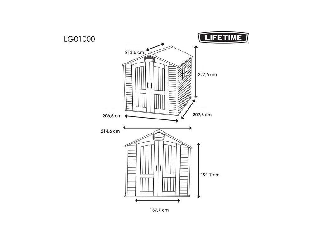 Bezúdržbový, robustní, praktický plastový domek nové generace z extrémně odolného polyethylenu s UV filtrem o síle stěny až 26 mm se sedlovou střechou. Domek nežloutne ani nekřehne na slunci. Nemusíte ho pravidelné natírat, jak je to nutné u tradičních dřevěných domků. Odolný domek LIFETIME FOX od renomovaného výrobce Lifetime Products Inc. je vyrobený v závodě Utah v USA. Domek může sloužit pro uschování nářadí, zahradní techniky, zahradního nábytku, jízdního kola, příslušenství k bazénu nebo dřeva. Dvojité křídlové dveře o rozměrech 1,38 x v 1,92 m umožňuji snadný přístup do domku. Sedlová střecha zajišťuje efektivní odvod dešťové vody. Sklon střechy 30o výrazně snižuje množství a tlak sněhu na střechu. Plastový domek je odolný zatížením střechy na sníh max 115 kg/m2. Testovaná odolnost domku na vítr je max 113 km/hod. Uvnitř domku je omezená kondenzace vody ve srovnání s kovovými variantami. Domek LIFETIME FOX má nosnou kovovou konstrukci a dvojité stěny, střecha, dvojité dveře, podlaha jsou z masivního velice odolného až prakticky nerozbitného plastu. Domek jednoduše přenesete do jiné části zahrady.
