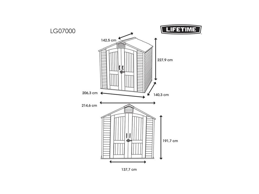 Bezúdržbový, robustní, praktický plastový domek nové generace z extrémně odolného polyethylenu s UV filtrem o síle stěny až 26 mm se sedlovou střechou. Domek nežloutne ani nekřehne na slunci. Nemusíte ho pravidelné natírat, jak je to nutné u tradičních dřevěných domků. Odolný domek LIFETIME STARLET od renomovaného výrobce Lifetime Products Inc. je vyrobený v závodě Utah v USA. Domek může sloužit pro uschování nářadí, zahradní techniky, zahradního nábytku, jízdního kola, příslušenství k bazénu nebo dřeva. Dvojité křídlové dveře o rozměrech 1,38 x v 1,92 m umožňuji snadný přístup do domku. Sedlová střecha zajišťuje efektivní odvod dešťové vody. Sklon střechy 30o výrazně snižuje množství a tlak sněhu na střechu. Plastový domek je odolný zatížením střechy na sníh max 115 kg/m2. Testovaná odolnost domku na vítr je max 113 km/hod. Uvnitř domku je omezená kondenzace vody ve srovnání s kovovými variantami. Domek LIFETIME STARLET má nosnou kovovou konstrukci a dvojité stěny, střecha, dvojité dveře, podlaha jsou z masivního velice odolného až prakticky nerozbitného plastu. Domek jednoduše přenesete do jiné části zahrady.