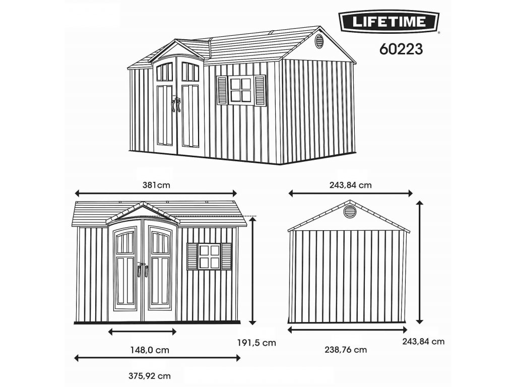 Bezúdržbový, robustní, praktický plastový domek nové generace z extrémně odolného polyethylenu s UV filtrem o síle stěny až 25 mm se sedlovou střechou. Domek nežloutne ani nekřehne na slunci. Nemusíte ho pravidelné natírat, jak je to nutné u tradičních dřevěných domků. Odolný domek LIFETIME SOL od renomovaného výrobce Lifetime Products Inc. je vyrobený v závodě Utah v USA. Domek může sloužit pro uschování nářadí, zahradní techniky, zahradního nábytku, jízdního kola, příslušenství k bazénu nebo dřeva. Dvojité křídlové dveře o rozměrech 1,42 x 1,915 m umožňuji snadný přístup do domku. Sedlová střecha zajišťuje efektivní odvod dešťové vody. Sklon střechy 30o výrazně snižuje množství a tlak sněhu na střechu. Plastový domek je odolný zatížením střechy na sníh max 115 kg/m2. Testovaná odolnost domku na vítr je max 113 km/hod. Uvnitř domku je omezená kondenzace vody ve srovnání s kovovými variantami. Domek LIFETIME SOL má nosnou kovovou konstrukci a dvojité stěny, střecha, dvojité dveře, podlaha jsou z masivního velice odolného až prakticky nerozbitného plastu. Domek jednoduše přenesete do jiné části zahrady.