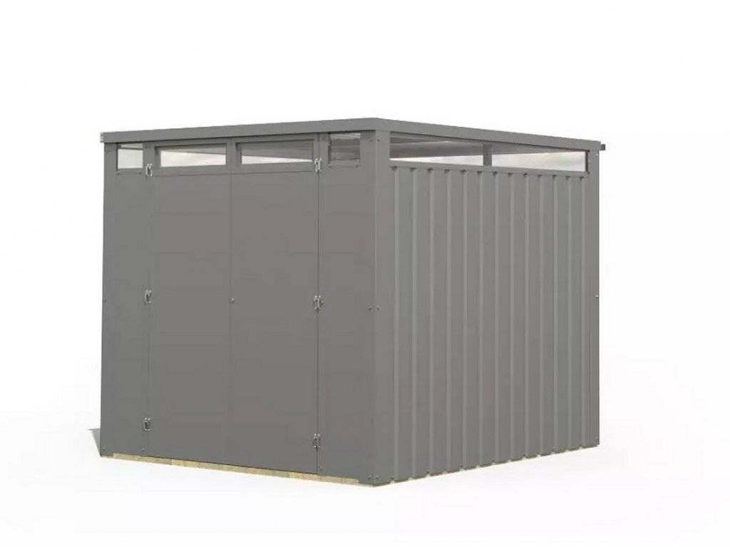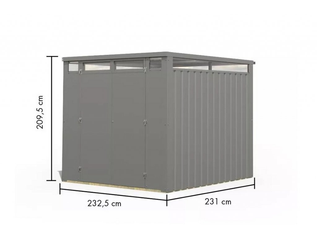 Zahradní kovový domek nejvyšší kvality o rozměru š 2,32 x d 2,31 x v 2,10 m v šedé barvě s plochou střechou se sklonem 0,5o. Domek KARIBU CALLISTO 2 je vyrobený z práškově lakovaného trapézového plechu o síle 0,5 mm a robustního rámu z pozinkované ocelové čtyřhranné trubky. Zhraní domek je teda velice odolný a chráněný před povětrnostními vlivy. Trapézový plech je opatřený poctivě aplikovanou práškovou barvou, která dodává estetický nádech, ale i zajišťuje trvanlivost a spolehlivost. Celoplošný světelný pás z umělého skla v horní části domku poskytuje přirozené osvětlení interiéru a vytváří příjemnou atmosféru. Zahradní domek obsahuje okapový žlab, který účinně odvádí vodu.