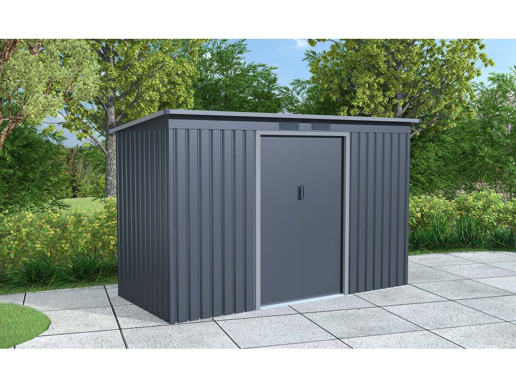 Špičkoví a praktický kovový zahradní domek s pultovou střechou. Konstrukce z pozinkovaného profilovaného plechu s vysokou pevností a tloušťkou stěny 0,22 - 0,35 mm. Vysoká tloušťka stěny zajišťuje odolnost a dlouhou životnost. Odolný domek HALLE 94 od renomovaného výrobce Lanit Plast může sloužit jak pro rekreaci, tak i pro uschování nářadí, zahradní techniky a zahradního nábytku. Čelní vnitřní posuvné dvoukřídlé dveře o rozměru 96 x 151 cm umožňuji snadný přístup do domku. Pultová střecha umožňuje efektivní odvod dešťové vody.