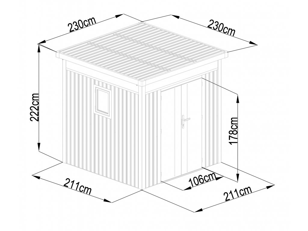 Elegantní, moderní, funkční a s pečlivě promyšlenými detaily plechový domek o rozměru š 2,11 x d 2,11 x v 2,22 m v antracitové barvě. Plechy stěn o síle 0,4 mm a rámy z pozinkované oceli tloušťky od 0,5 do 1,2 mm. Vysoká tloušťka stěny zajišťuje odolnost a dlouhou životnost. Odolný domek MARBURG 88 od renomovaného výrobce Lanit Plast může sloužit jak pro rekreaci, tak i pro uschování nářadí, zahradní techniky a zahradního nábytku. Čelní dvoukřídlé dveře na pantech o rozměru 1,06 x 1,78 m lze bezpečně uzamknout a umožňuji snadný přístup do domku. Prosvětlené vrchní části panelů a otevíratelné okno dodávají Vašemu domku svěžest a vzdušnost. Plochá střecha umožňuje efektivní odvod dešťové vody. Domek MARBURG 88 je vhodný k uskladnění zahrádkářských, grilovacích, campingových, bazénových, sportovních a motoristických potřeb...