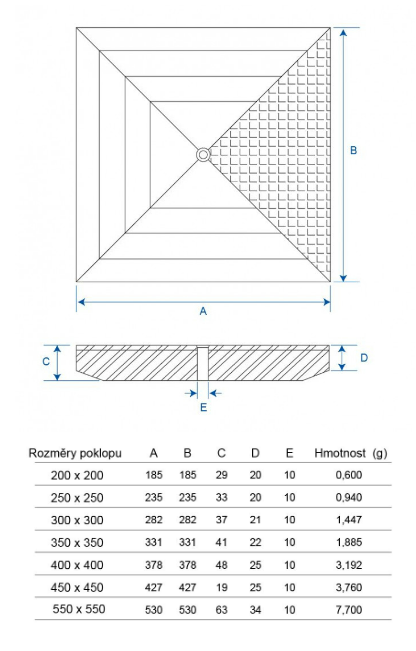 | Rozměr: | 200x200, 250x250, 300x300, 350x350, 400x400, 450x450, 550x550, 700x700 mm |