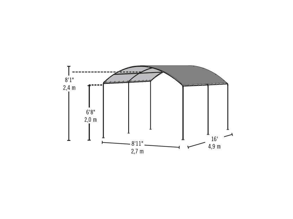 Vysoce kvalitní a pevný zahradní přístřešek renomovaného amerického výrobce ShelterLogic s rozměry š 2,70 x d 4,90 x v 2,40 m a zastavěnou plochou 13,23 m2. Plachtový přístřešek je určený pro zastřešení zahradního nábytku, jako lehká plátěná pergola, přístřešek pro auto, případě i jako party stan. Můžete ho využít k uskladnění zahrádkářských, grilovacích, campingových, bazénových, sportovních a motoristických potřeb...