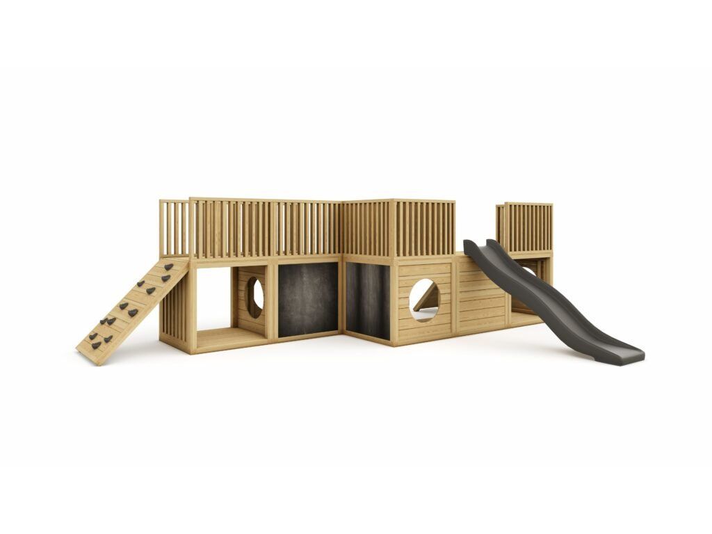 Prostor zabaví děti na dlouhé hodiny. Může sloužit jako základna, vyhlídkový bod nebo dokonce labyrint. Vaše dítě se zde bude rozvíjet fyzicky i kreativně! Nakreslí obrázek na tabuli, překoná překážkovou dráhu a s pomocí doplňků si vytvoří vlastní dětskou oázu.