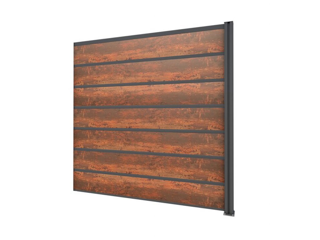 Hliníková konstrukce je vyrobena z eloxovaného hliníku, která obsahuje speciální patentované, zesílené zámky pro vsunutí výplňových laminátových desek. Eloxování je speciální metoda, při které se na povrchu hliníku vytvoří ochranná vrstva oxidu hliníku, která chrání hliník před povětrnostními vlivy a zajistí odolnost vůči počasí, korozi a především dlouhodobou bezúdržbovost. Výplň plotového dílce je tvořen bezúdržbovými laminátovými lamelami s realistickým dřevodekorem.