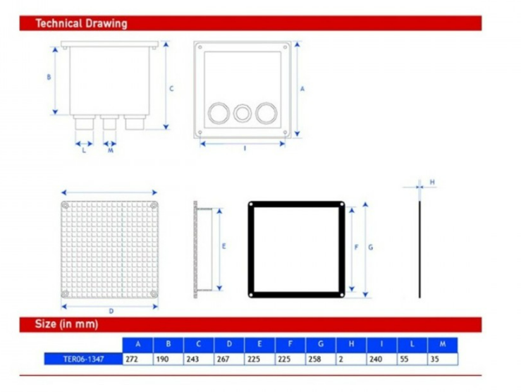 Revizní šachta z polypropylenu včetně integrovaného těsnění pro přívod a také pohodlnou revizi elektrokabelů a traf. Ve spodní části má připraveny otvory pro přívod kabelů v různých průměrech. Víko obsahuje těsnění pro hermetické uzavření. Extrémní životnost a vysoká odolnost díky materiálu z polypropylenu. Odolnost vůči UV záření a mrazu.