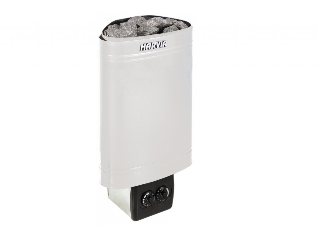 Úsporná elektrická saunová kamna o výkonu 3,6 KW s integrovaným ovladačem, zapojení do 230 V, určené pro finské interiérové sauny menších rozměrů. Elektrická saunová kamna se zásobníkem saunových kamenů jsou vyrobena z ocelového pozinkovaného plechu. Termostat od 50 do 80°C. Mechanický časovač od 0 do 4 hod. Odložený časovač od 1 do 8 hod. Elegantní designová kamna nelze rovnou zapojit do zásuvky, doporučujeme je zapojit profesionálním elektrikářem. Balení obsahuje 20 kg originálních finských saunových kamenů HARVIA, výborně akumulují teplo, voda se vypařuje efektivně, minimálně se rozpadají a vydrží vám mnohonásobně déle, než jiné běžné horniny.