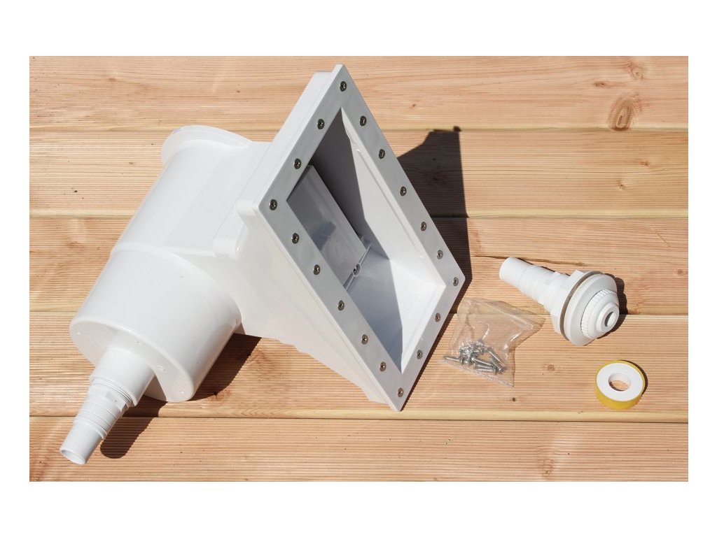 Skimmer určený k odvodu vody z bazénu do filtračního okruhu. Skimmer obsahuje košík pro zachycení hrubých nečistot a připojení pro hadici bazénového vysavače. Vyrobeno v Německu.