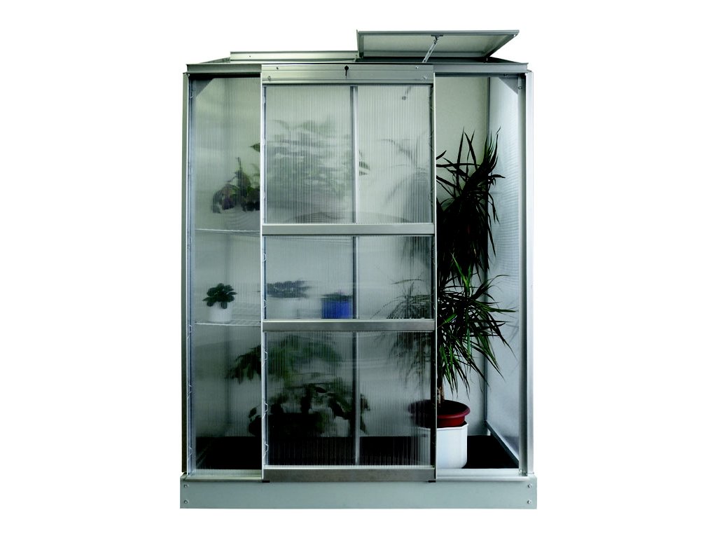 Nadstandardně kvalitní skleník ke zdi z polykarbonátu 4 mm a eloxovaných hliníkových profilů s rozměry š 1,31 x h 0,69 x v 1,84 m od renomovaného výrobce VITAVIA GARDEN LTD z Velké Británie, s posuvnými dveřmi, 1 x střešní ventilační okno a možností pozinkované ocelové základny. Plocha 0,9 m2. Záruka 15 let na konstrukci a 10 let na polykarbonát. Barva: zelená.