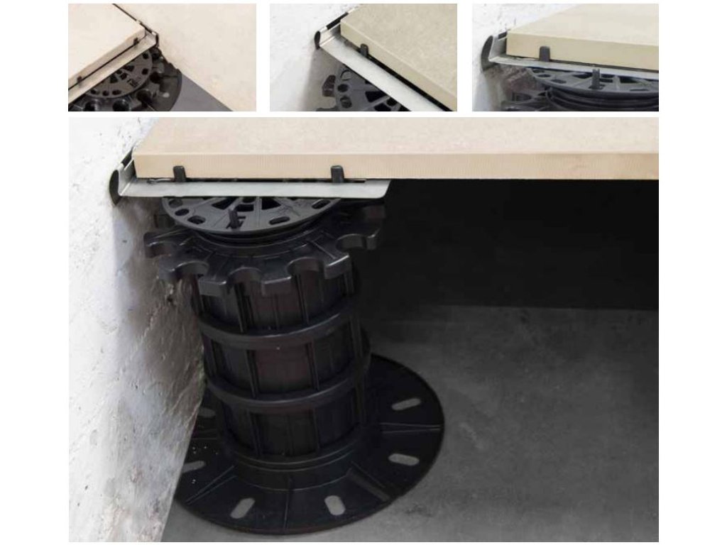 Stěnový klip pro teleskopické terče je určený pro vymezení mezery a fixaci dlažby u zdi či jiné svislé konstrukce. Montuje se na teleskopické terče pod dlažbu.