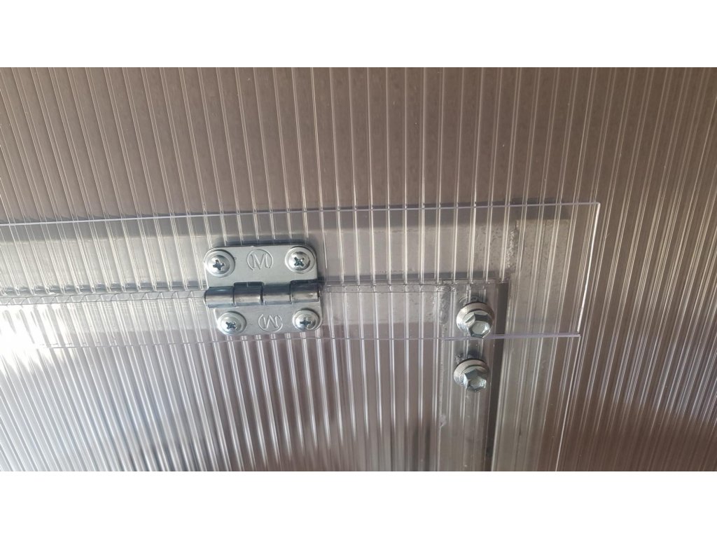 Jednokřídlé střešní provětrávací okno pro zahradní skleník DOMIK o rozměru 0,96 x 0,77 m. Je určeno pro lepší regulovatelnost teploty uvnitř skleníku. Vyrobeno přímo pro zahradní skleník DOMIK. Rám okna je vyroben z galvanicky pozinkované ocelového U-profilu 20 x 20 mm. Pro prosklení je využita vyříznutá polykarbonátová deska. Okno lze manuálně nastavit v poloze zavřeno nebo otevřeno. Toto střešní provětrávací okno je plně kompatibilní s automatickým skleníkovým otevíračem oken, který automaticky reguluje vnitřní teplotu skleníku v závislosti na okolní teplotě.