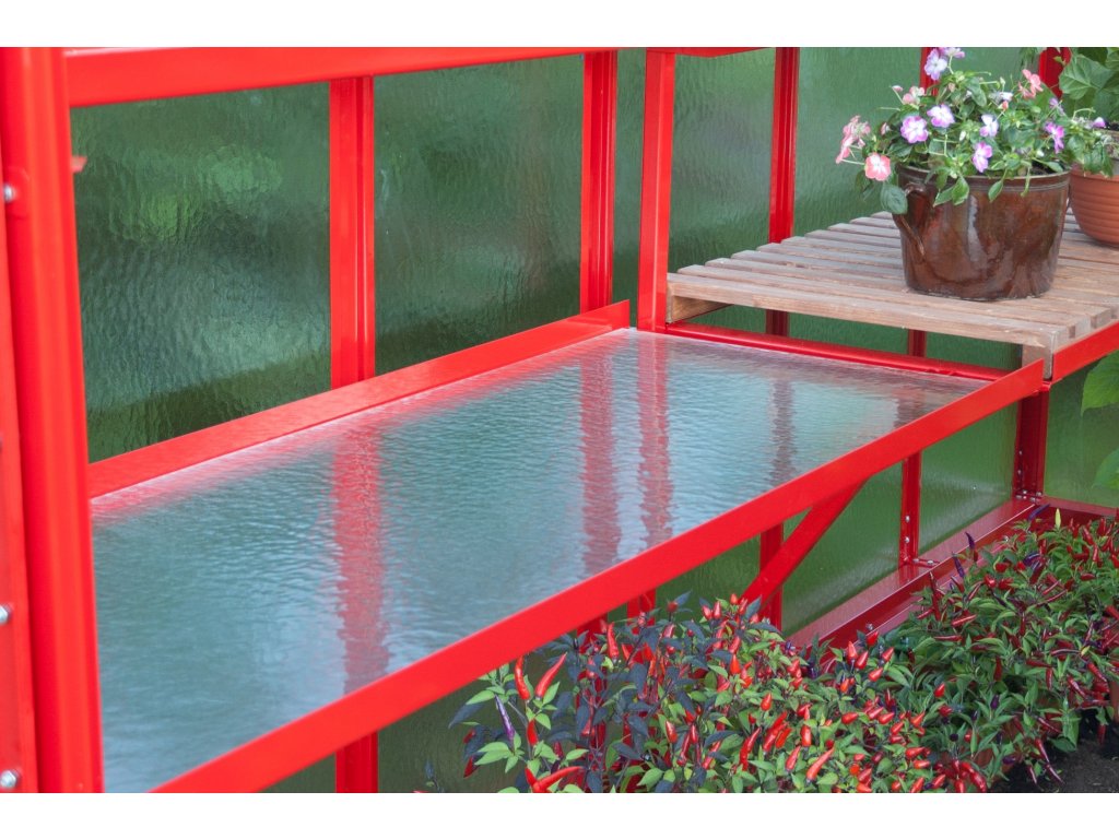 Výplň konstrukce polic z kaleného skla 4 mm o rozměru 35 x 150 cm. Kompatibilní se skleníky Limes Primus. Skleníky Limes Primus mají konstrukci polic již v základním provedení. Jako výplň této konstrukce polic můžete použít rozptylové sklo, které je zakaleno a tak získá až 5 x vyšší pevnost. Sklo méně stíní než dřevěný rošt . Vyniká zejména svojí pevností.