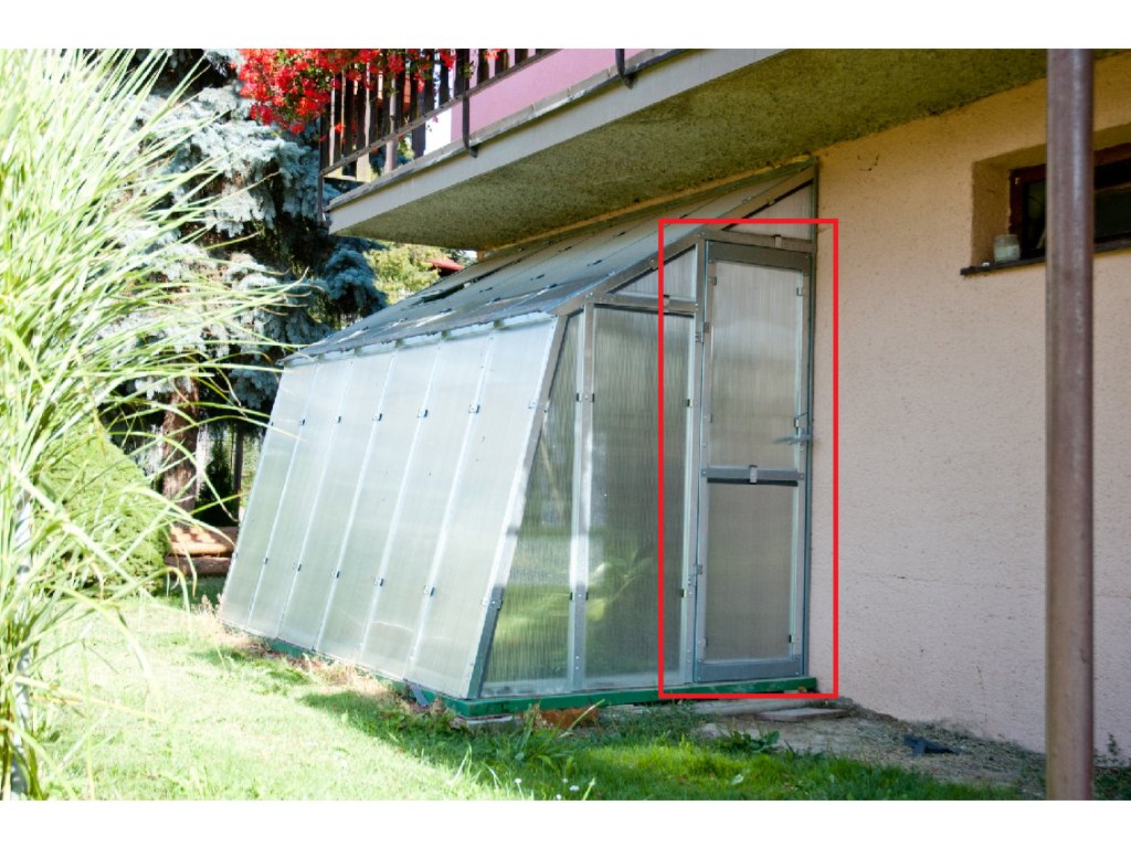 Zadní jednokřídlé dveře o rozměru 170x105 cm určené pro vytvoření průchozího skleníku. Konstrukce z vysoce kvalitní žárově zinkované oceli tloušťky 1–3 mm.