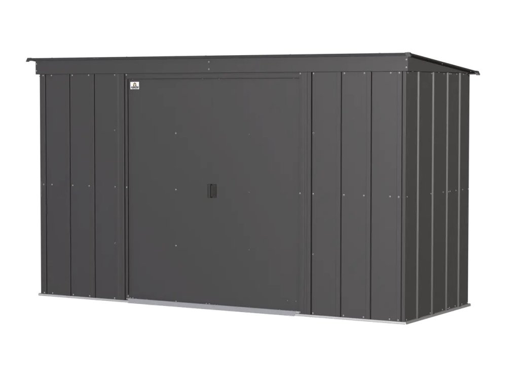 Velice kvalitní kovový zahradní domek s klasickou pultovou střechou v barvě antracit, vyrobený v továrně ve městě Breese, stát ILLINOIS, USA renomovanou společností ARROW STORAGE PRODUCTS. Zahradní domek ARROW je prakticky řešený vetší kovový zahradní domek určený k uskladnění zahrádkářských, grilovacích, campingových, bazénových, sportovních a motoristických potřeb... Kovový domek má čelní vnitřní posuvné dvoukřídlé dveře o rozměru š 141 x v 160 cm. Plechové domky ARROW jsou nejrenomovanější světovou značkou v kategorii zahradních domků. Zahradní domek ARROW je vyrobený z vysoce kvalitního pozinkovaného profilovaného plechu s pevností se sílou stěny až 0,22 - 0,35 mm. Konstrukce je z pozinkovaného plechu o síle plechu od 0,36 do 0,40 mm. Střecha a podlahová konstrukce je povrchově upravena žárovým pozinkováním. Stěny a zbytek konstrukce prošly procesem elektrolytickým zinkováním. Kvalitní polyesterová barva chrání všechny nalakované díly. Záruka proti prorezavění 10 let.
