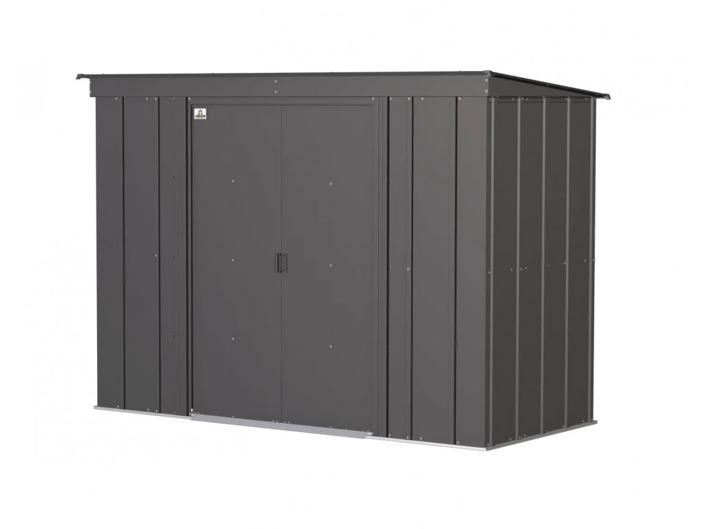 Velice kvalitní kovový zahradní domek s klasickou pultovou střechou v barvě antracit, vyrobený v továrně ve městě Breese, stát ILLINOIS, USA renomovanou společností ARROW STORAGE PRODUCTS. Zahradní domek ARROW je prakticky řešený střední kovový zahradní domek určený k uskladnění zahrádkářských, grilovacích, campingových, bazénových, sportovních a motoristických potřeb... Kovový domek má čelní vnitřní posuvné dvoukřídlé dveře o rozměru š 110 x v 160 cm. Plechové domky ARROW jsou nejrenomovanější světovou značkou v kategorii zahradních domků. Zahradní domek ARROW je vyrobený z vysoce kvalitního pozinkovaného profilovaného plechu s pevností se sílou stěny až 0,22 - 0,35 mm. Konstrukce je z pozinkovaného plechu o síle plechu od 0,36 do 0,40 mm. Střecha a podlahová konstrukce je povrchově upravena žárovým pozinkováním. Stěny a zbytek konstrukce prošly procesem elektrolytickým zinkováním. Kvalitní polyesterová barva chrání všechny nalakované díly. Záruka proti prorezavění 10 let.