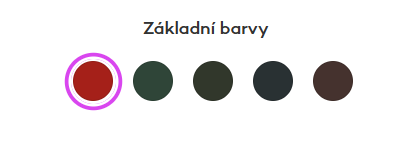 1. signální červená (RAL 3001), 2. mechově zelená (RAL 6005), 3. jedlově zelená (RAL 6009), 4. antracit šedá (RAL 7016), 5. čokoládově hnědá (RAL 8017). V případě barevné úpravy konstrukce je vyžadována nevratná záloha.