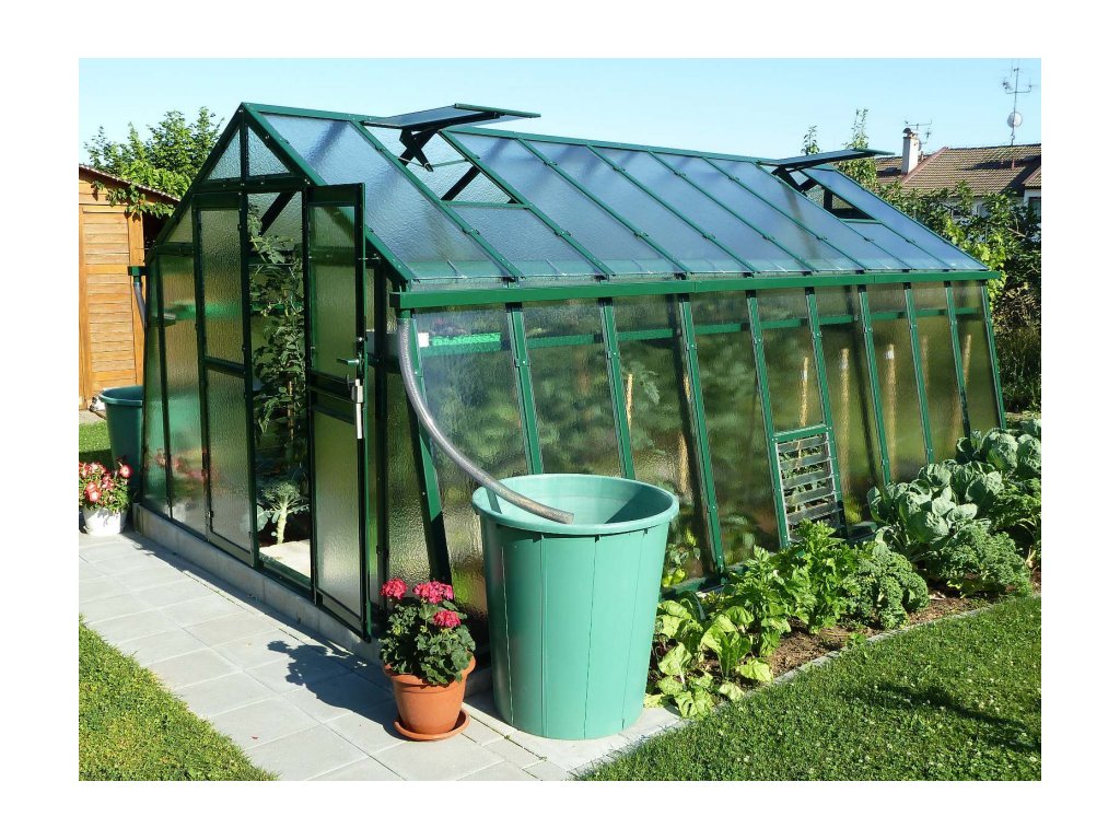 Skleník můžete za příplatek doplnit také oboustrannými originálními okapovými žlaby z oceli pro celou délku skleníku. Okapy zajistí sběr dešťové vody a ochrání tak základy skleníku před erozí, kterou může stékající voda způsobit. Tím se prodlouží celková životnost skleníku. Na střešní okno lze instalovat automatický otvírač střešního okna. Díky němu můžete automaticky regulovat teplotu uvnitř skleníku a nahradit tak manuální otevírání či zavírání oken.