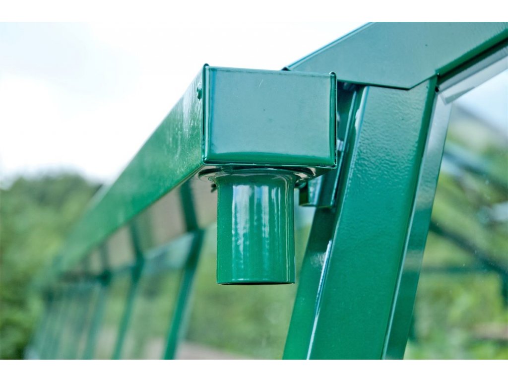 Skleník můžete za příplatek doplnit také oboustrannými originálními okapovými žlaby z oceli pro celou délku skleníku. Okapy zajistí sběr dešťové vody a ochrání tak základy skleníku před erozí, kterou může stékající voda způsobit. Tím se prodlouží celková životnost skleníku. Na střešní okno lze instalovat automatický otvírač střešního okna. Díky němu můžete automaticky regulovat teplotu uvnitř skleníku a nahradit tak manuální otevírání či zavírání oken.