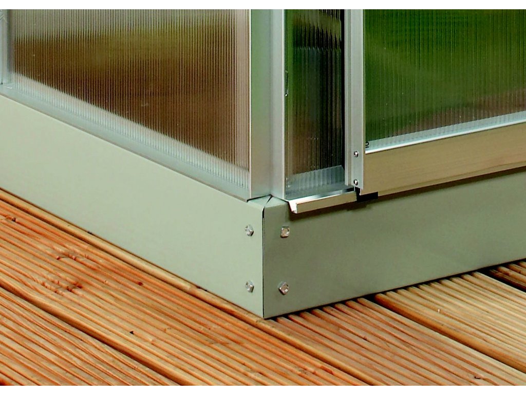 Originální základna pro skleník řady VITAVIA URANUS 9900 z pozinkovaného ocelového plechu v šedé barvě od renomovaného výrobce VITAVIA GARDEN LTD z Velké Británie. Výška základny je 6 cm. Pokud nechcete budovat betonové základy skleníku je základna ideální volba.